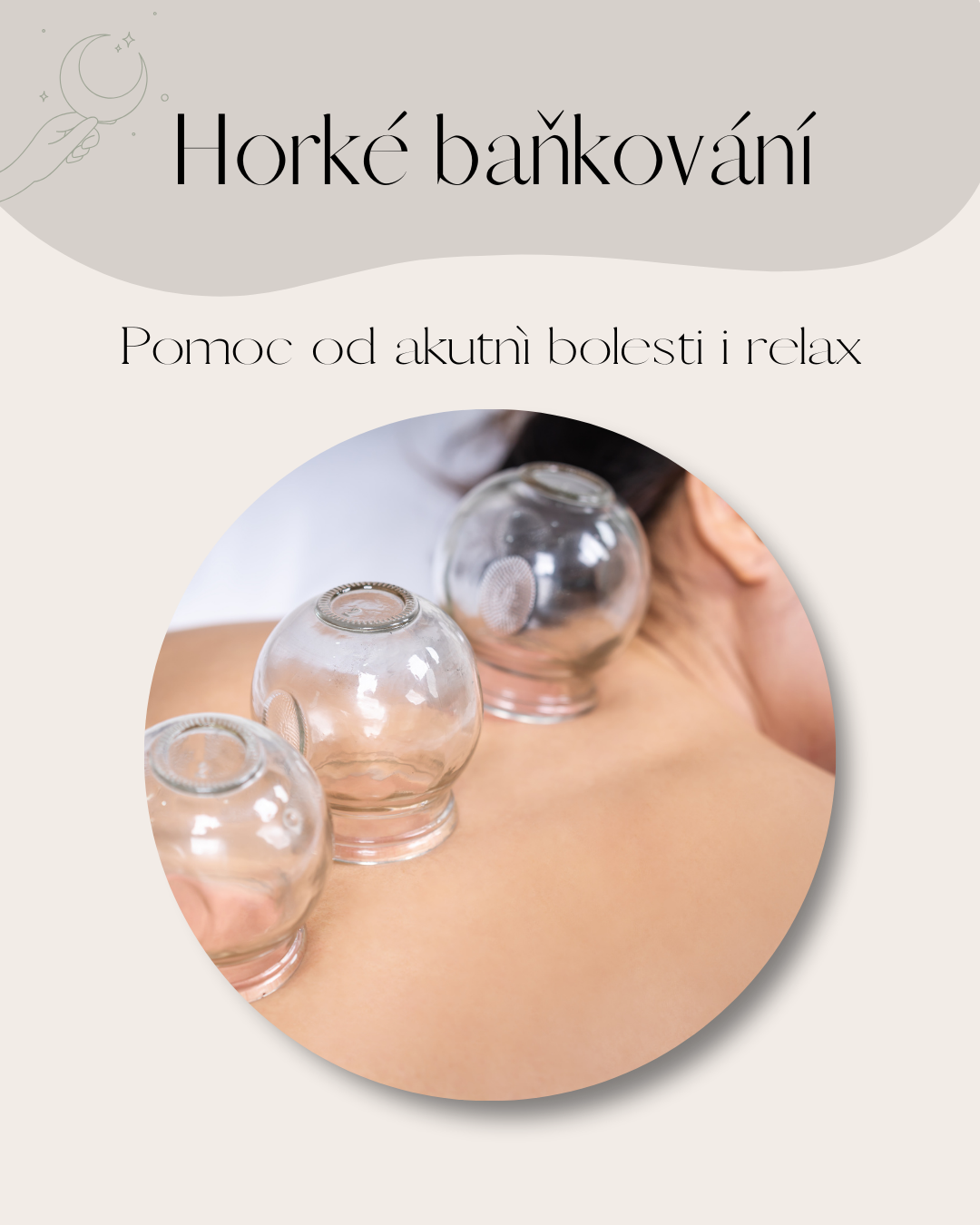 Horké baňkování je tradiční technika baňkování s ohněm, která účinně pomáhá při akutní bolesti zad, šíje i svalovém napětí. Díky podtlaku se prokrví tkáně, uvolní se zatuhlé svaly a podpoří se přirozená regenerace těla.
